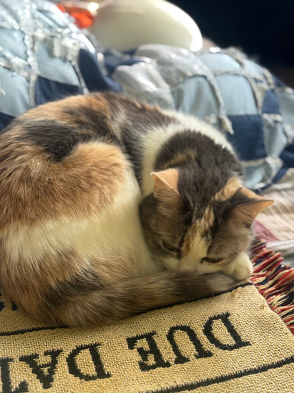 Speaking of magic, Circe gave me the sweetest little birthday gift anyone has ever blessed me with–herself. Little nugget decided to cuddle right up with me for some snuggles while I read Galatea by Madeline Miller. I was a little salty that she refused to autograph my copy of Circe, but this gift more than made up for it. We then polished off the night with a mocha cake that won the spot for my favorite slice of the weekend. God, I love coffee.