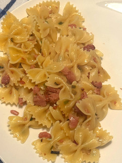 Our return home commenced our first tandem cooking experience. Carolyn is 100% at fault for my spam obsession, and paid reparations in the form of spam pasta, salad, and our birthday cake slice of the day: Tiramisu cake. No complaints here.